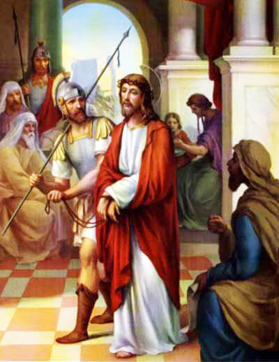 Pilate judges unjustly because of his human respect. Jesus is silent and accepts