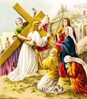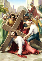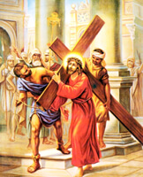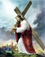 his cross He will redeem us. With determination he lifts the heavy burden upon his